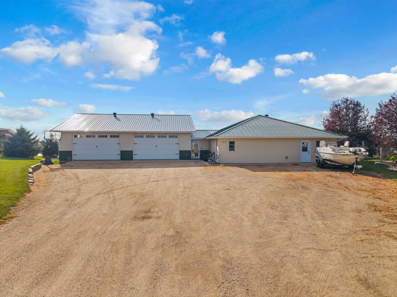 Life at the ELM. This home offers 4 bedrooms and 2 bathrooms, all on one level with no stairs. The primary suite includes a private bathroom, walk-in closet, and in-floor heat.Sitting on just under an acre (0.95 acres), the property includes a sprinkler system and a large poured concrete patio off the back.The garage is a standout -- 44x42, insulated and heated, with office space. Exterior features include a steel roof and siding for durability.A major renovation was completed in 2021. making this home ready for its next owner.