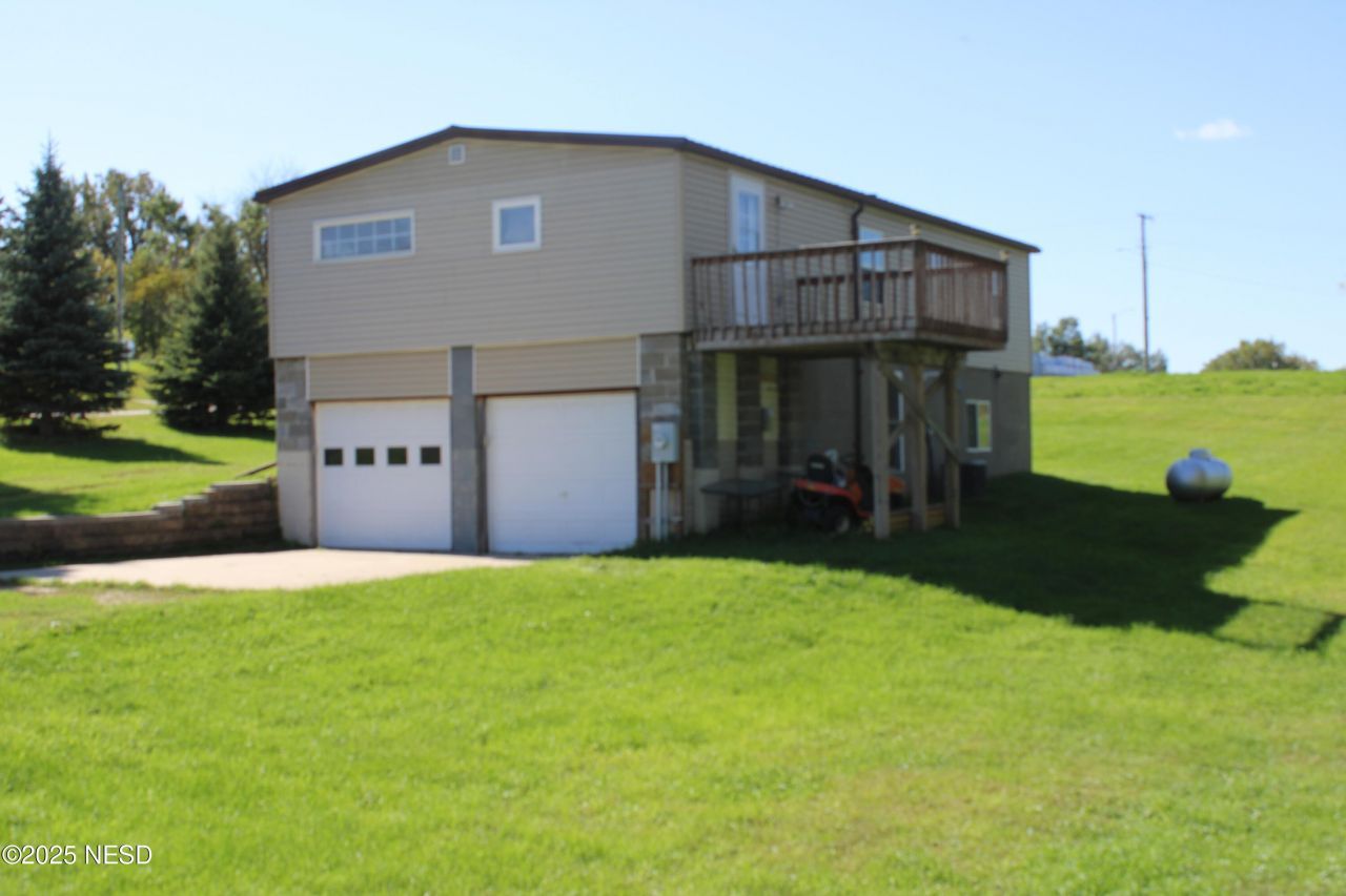 This 2-bedroom, 1.5-bath home offers an efficient layout with a tuck-under garage and storage space beneath the main level. The elevated design keeps the living spaces bright and offers a nice view of the generous yard. Inside, you'll find a comfortable living room with plenty of natural light, a kitchen with warm wood accents, and two well-sized bedrooms. A full bath plus a half bath add convenience. The large lot provides space for a fire pit, garden, pets, or play area ? giving you plenty of room to enjoy small-town living.