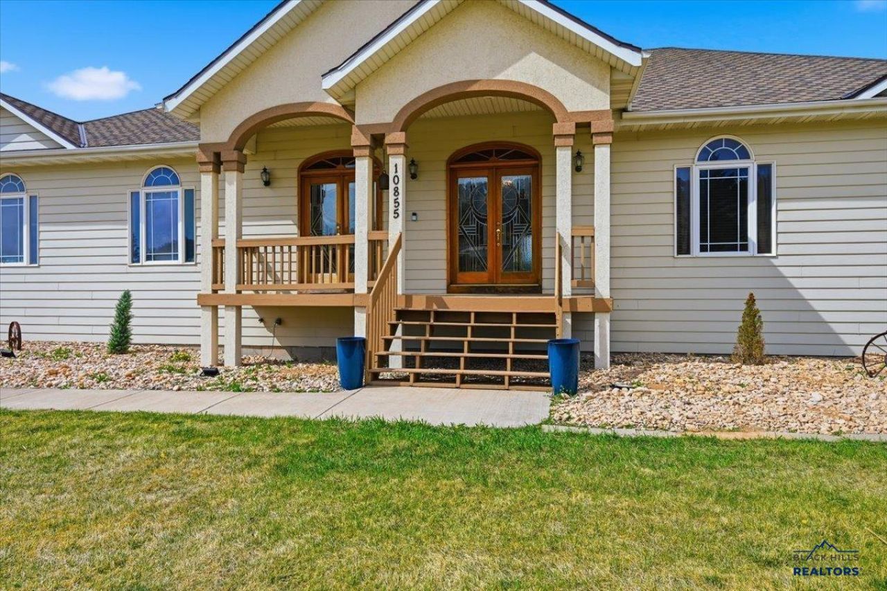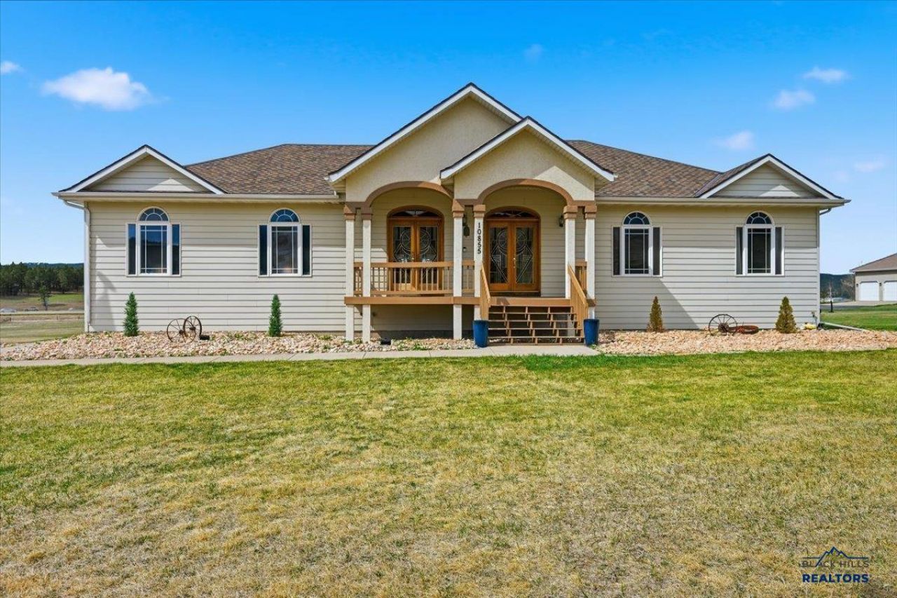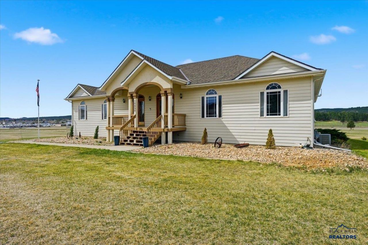 Charming and spacious 5-bedroom, 3-bathroom home located in the desirable Rendezvous Ranch Subdivision on 3.80 acres. This beautifully maintained property offers a warm and inviting feel with thoughtful details throughout. The main level features vaulted ceilings, a bright and open living room with a cozy fireplace, a stunning kitchen perfect for both everyday living and entertaining, as well as a beautiful dining area with direct access to the expansive deck. Elegant French doors, arched doorways, and a covered front porch add to the home's character and charm. The main level includes three bedrooms: two additional bedrooms with a shared full bathroom, plus a private primary suite featuring a walk-in closet and en-suite bathroom. The finished walkout basement expands your living space with two more bedrooms, a full bathroom, and a large family room-ideal for gatherings or relaxing. Additional highlights include a 3-car attached garage and plenty of room to enjoy the surrounding acreage. This home combines space, charm, and functionality in a peaceful setting-don't miss the opportunity to make it yours!