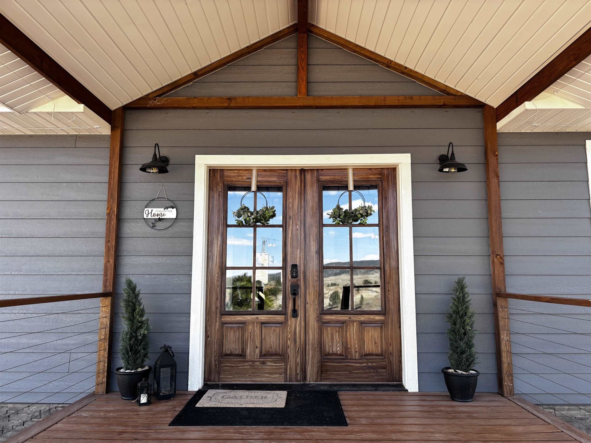 Countryside Comfort Just Minutes from Hot Springs, SD. Welcome home to this beautifully crafted ranch-style retreat set on 6.67 acres of peaceful countryside ? all just minutes from the conveniences of Hot Springs. Designed for main-level living, this 3-bedroom, 2-bath home offers a perfect blend of rustic charm and modern comfort. Step onto the 12' x 12' covered front deck and into a light-filled open-concept living space featuring vaulted ceilings, a cozy wood stove, and custom wood floors. The kitchen is a chef's delight with butcher block countertops, a spacious 4' x 7' island with abundant storage, a pantry, and Samsung black stainless-steel appliances ? including a gas stove with a custom range hood. From the dining area, double patio doors lead to a 12' x 48' back deck with built-in lighting ? the perfect spot to enjoy the serene views. The backyard is ready for fun and relaxation with a firepit, children's play area, raised garden beds, and a 10' x 10' storage shed. The primary suite is a private retreat with a spa-like bathroom featuring a soaking tub, walk-in tiled shower, and a custom walk-in closet. Two additional bedrooms and a full bath are conveniently located off the main living area. A mudroom/laundry room connects to the 705 sq ft attached garage, which includes a side-access garage door for lawn equipment and a unique foldaway staircase leading to a loft ? ideal for storage or future guest space. Newly crafted garage workbench and plenty of storage.