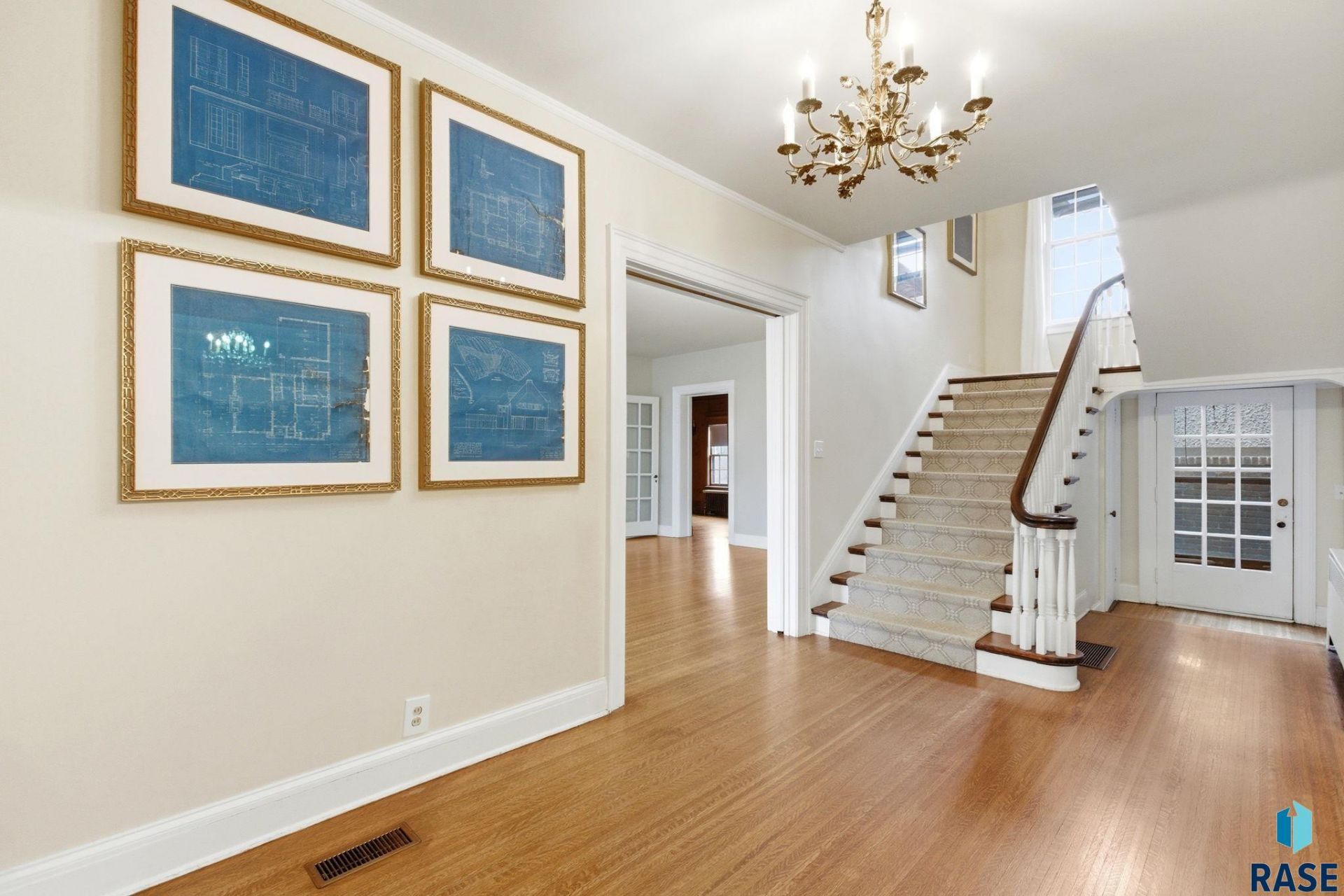 Welcome to 1315 S Main Ave a storybook Tudor Revival built in 1921 and one of the storied Morrell-Foster homes, a true anchor to the history of Sioux Falls. Extensively modernized with a nod to the past, every update was carefully chosen to blend seamlessly with the home's original plaster walls, hardwood floors, and historic molding. Located in the coveted McKennan Park neighborhood just minutes from downtown Sioux Falls, this 4+ bedroom, 4 bathroom home offers over 4,500 sq/ft of one-of-a-kind living space that simply cannot be replicated.Step inside and a dramatic grand staircase immediately sets the tone. The main level is where this home truly shines, designed for the kind of gracious entertaining that McKennan Park was built for. Numerous original French doors flow between the formal dining room, living room, and sunroom, giving you the flexibility of an open, connected main level or intimate, defined spaces depending on the occasion. The formal dining room features a stunning bay window with a window seat that extends the full length of the room, flooding the space with natural light. Just off the dining room, the fully remodeled chef's kitchen showcases gleaming quartz countertops, a custom tile backsplash, high-end appliances, and an abundance of cabinetry. A beautifully appointed Butler's pantry connects the kitchen and dining room seamlessly the kind of detail that sets a home of this caliber apart.The expansive formal living room anchors the home with a wood-burning fireplace and generous proportions that feel both grand and welcoming. The sunroom one of the most coveted spaces in any McKennan Park home is surrounded by windows on all sides and bathed in natural light, perfect for morning coffee, quiet reading, or enjoying the beautifully landscaped grounds year-round. Completing the main level is a handsome den with a second fireplace, ideal as a home office, library, or cozy evening retreat.The upper level offers four bedrooms total. The primary suite is a genuine sanctuary featuring a generous sitting area, an enormous walk-in closet, a private washer and dryer, a Juliet balcony, and a fully updated spa-inspired bath complete with a clawfoot soaking tub and large tile walk-in shower. Two additional spacious bedrooms share a beautifully updated Jack and Jill bath. The fourth bedroom the original maid's quarters offers its own private sitting room and a fully updated en suite bath, perfect as a guest suite, in-law space, or luxurious private office.The finished attic provides a versatile retreat plus an additional non-legal bedroom, ideal for a playroom, studio, or flex space. The partially finished lower level is an entertainer's dream, complete with a dry bar, wine cellar, and extensive built-in shelving for storage.Outside, the grounds are as thoughtfully designed as the home itself. A formal garden-styled courtyard on the side of the home framed by a lush Russian sage border alongside banks of hydrangeas, juniper, and boxwoods creates a serene setting for morning coffee, al fresco dining, or evening drinks. The rear flex area and courtyard both feature brand new hardscape with natural stone borders. In-ground sprinklers in the front keep the landscaping looking its best with minimal effort. The brick exterior has been freshly repointed, the chimney restored, and the home newly painted all move-in ready.And then there is the roof steamed cedar shakes, one of only three in all of Sioux Falls and by far the most intricate of the three, giving this storybook Tudo