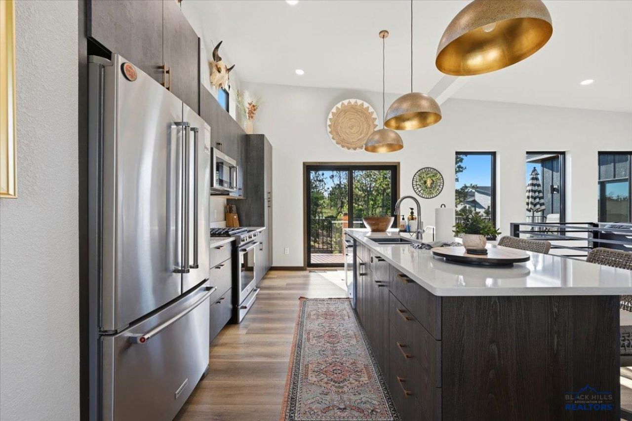 Set in the sought-after Powder House Pass community, this distinctive 5-bedroom retreat offers a unique blend of modern design and proven rental performance. Offered fully furnished, this turnkey property is already generating strong income, with bookings secured into 2026 making it an exceptional opportunity for both investors and those seeking a refined Black Hills getaway. Inside, the home features a thoughtfully designed layout with clean lines, curated finishes, and a warm, inviting feel throughout. The main living area is anchored by a striking slate fireplace, creating a cozy focal point, while an open staircase adds architectural interest and separation without sacrificing flow. Natural light and carefully selected design elements enhance the overall aesthetic. With over 3,400 sq. ft., the home is ideal for hosting. The main level includes 2 bedrooms, 2 bathrooms, and a dedicated office, while the walk-out lower level offers 3 additional bedrooms and 2 bathrooms-providing ample space for guests to gather and unwind. A wrap-around deck extends the living space outdoors, perfect for entertaining or relaxing in the surrounding Black Hills setting. Located just minutes from premier outdoor recreation including the Mickelson Trail and Terry Peak, the property also offers convenient access to the Powder House Pass clubhouse directly across the street, featuring a gathering area, kitchen, game room, and heated pools. Guest feedback consistently highlights the home's comfortable, welcoming atmosphere, contributing to its strong rental history and repeat visitors. Whether you're looking for a vacation home, investment property, or private retreat, this property delivers. To schedule a private tour, please contact Cher Rhoades @ Oak & Key Realty 605.639.1158.