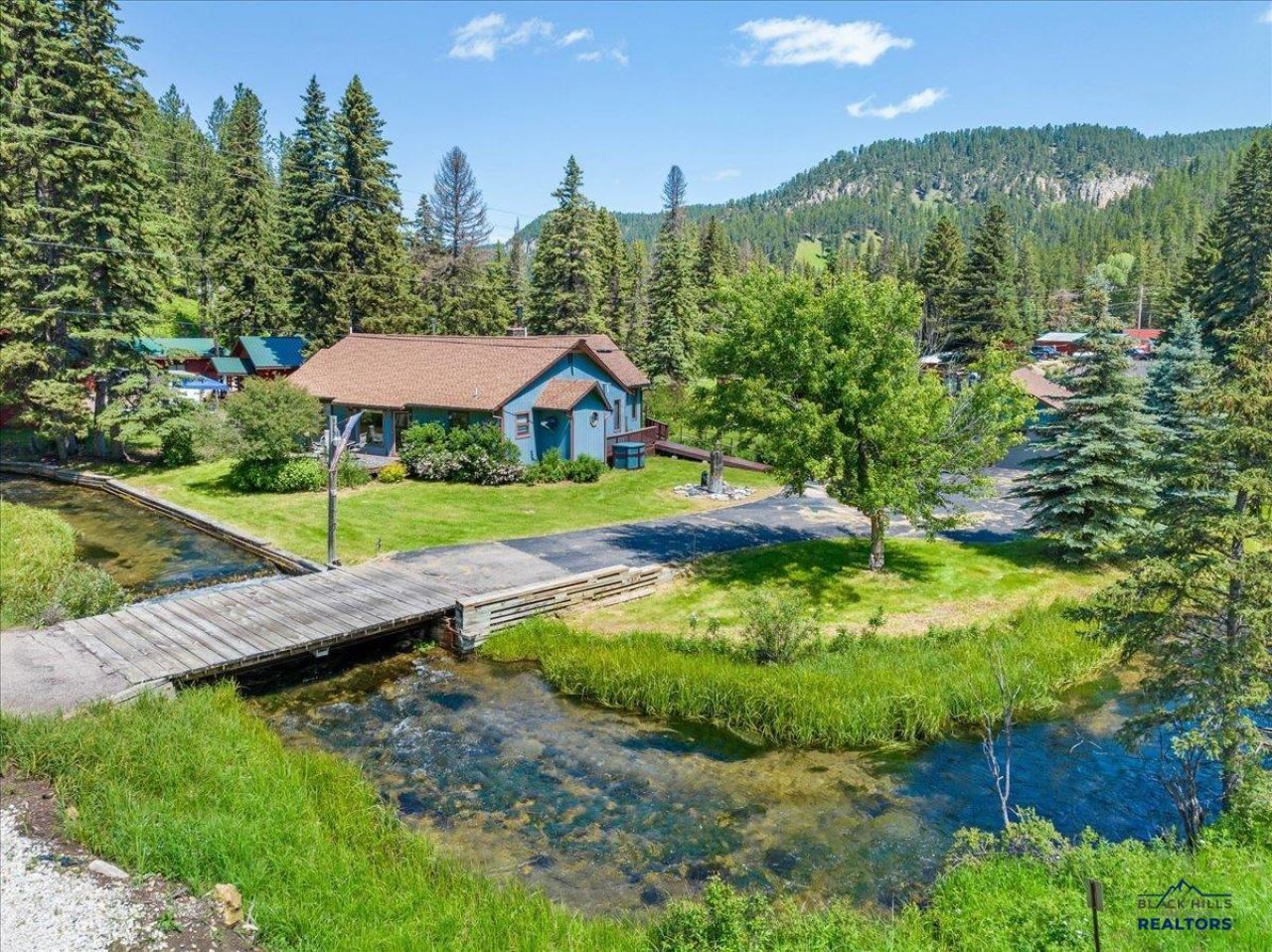 Set along the banks of Spearfish Creek and surrounded by the natural beauty of Spearfish Canyon, this one-of-a-kind property offers a rare opportunity to own a home truly immersed in the landscape. With the creek bordering three sides, the setting is nothing short of extraordinary? where the sound of flowing water becomes part of everyday life. This thoughtfully designed 3-bedroom, 2-bath home offers 2,174 sq. ft. of comfortable, one-level living. Inside, the expansive living room is anchored by a beautifully bricked fireplace and enhanced by a wet bar creating an inviting space to gather. Large windows frame the surrounding views and fill the home with natural light, seamlessly connecting the indoors with the beauty just beyond. The living space extends effortlessly outdoors to a spacious rear patio, complete with a hot tub? the perfect place to unwind while taking in the views of the creek and surrounding Black Hills. The kitchen and dining area offer both function and flow, while the oversized primary suite features a private bath and walk-in closet. Two additional bedrooms provide space for guests, family, or a home office. Located in Cheyenne Crossing, this property offers both privacy and convenience? just minutes from Lead, Deadwood, and Terry Peak Ski Area. Homes like this are rarely available? where nature, setting, and lifestyle come together in a way that feels truly timeless. For a private tour and more information, contact Cher Rhoades @ Oak & Key Realty 605.639.1158