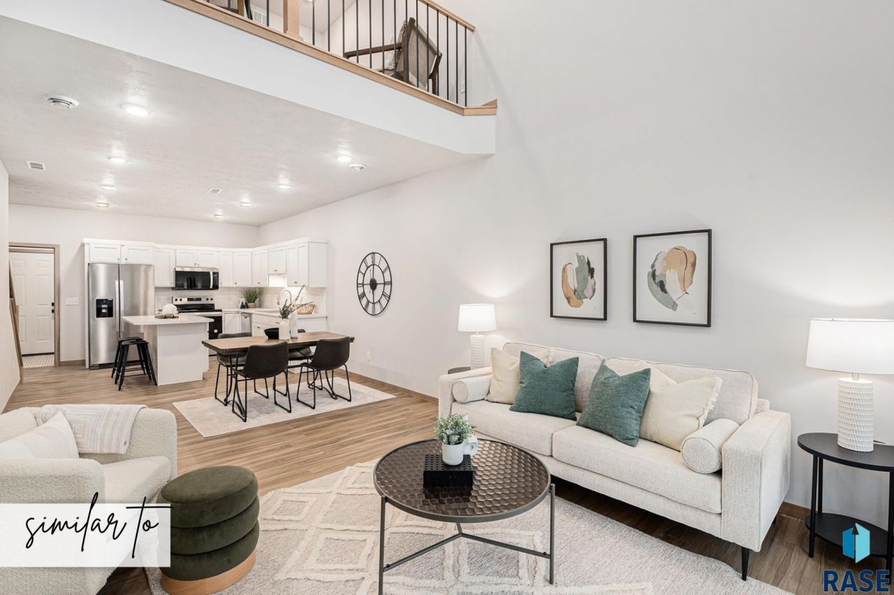 Seller offering 3% concession. Welcome to the Balboa-an elegant and functional 1.5-story townhome designed for comfortable, low-maintenance living. This thoughtfully designed home features an open-concept main level with dramatic 18-foot ceilings with a wall of windows in the living room that floods the home with natural light and leads out to a patio.. Creating a bright, airy space perfect for entertaining or relaxing.The spacious kitchen includes a large island with additional seating and Whirlpool appliance package. Enjoy the convenience of main-level living with a primary bedroom suite offering a walk-in shower and walk-in closet. Also on the main floor is a dedicated laundry area, guest half-bath, and a nook for a drop zone or creative space. Upstairs, the second level features a spacious loft, two additional bedrooms, and a full bathroom-perfect for guests, activities, or extra flexibilityHOA covers lawn care, snow removal, and trashThis is a rare opportunity to own a stylish, low-maintenance home with generous space and soaring design-ideal for first-time buyers, downsizers, or anyone who values open living and smart layout.Completion date is estimated mid May. Pictures and finishes are similar. Listing agent is officer/owner of Empire Homes.Directions: 69th and Tanner S on Tanner W on Jetty to home