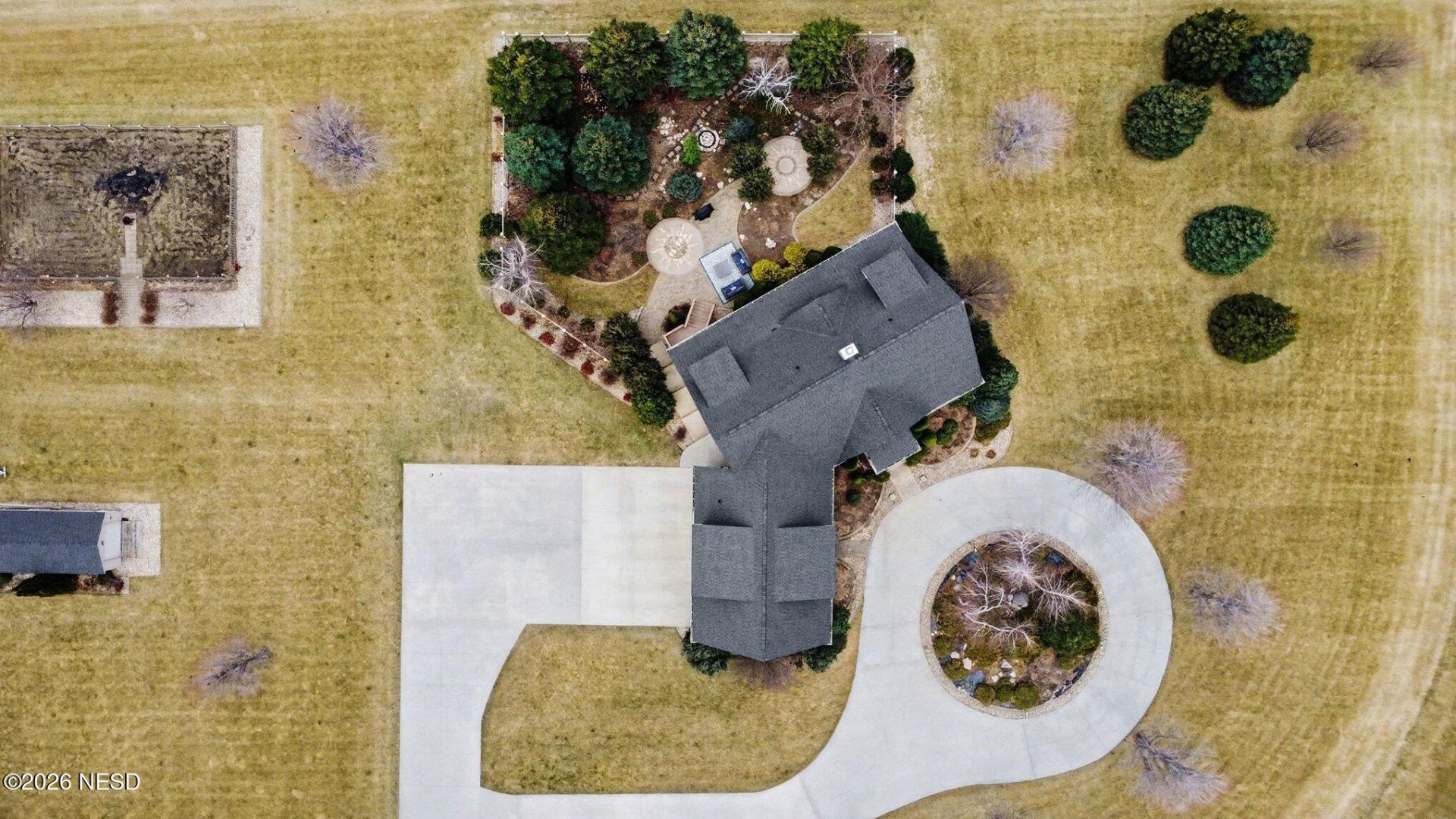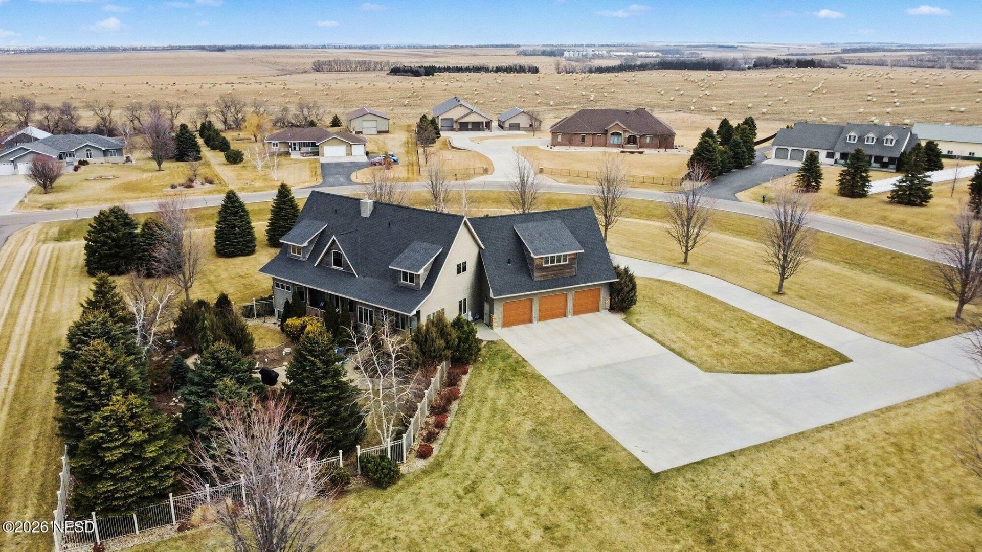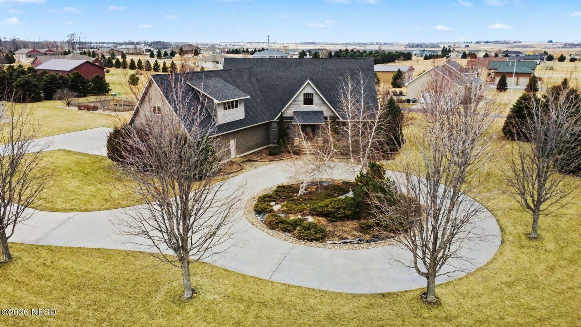 This stunning two-story home sits proudly on an executive 2 acre estate in the desirable Northwoods Addition. Featuring 6 bedrooms and 5 baths, this custom crafted residence shows meticulous care! Boasting over 6100 sq ft , the home is highlighted with soaring vaulted ceilings along with custom Quarter Sawn Oak cabinetry, handsome Stone fireplace and detailed trim work. Located above the oversized 3 stall heated garage sits a huge family room with a guest suite that could be used as a private office. The grounds are equally impressive, offering a park-like setting with a private patio, executive circular driveway, convenient backyard storage garage, firepit, mature trees, lush landscaping and vibrant flowering plants! A large fenced garden area provides beauty and functionality creating a peaceful outdoor retreat just in time for Spring planting !
