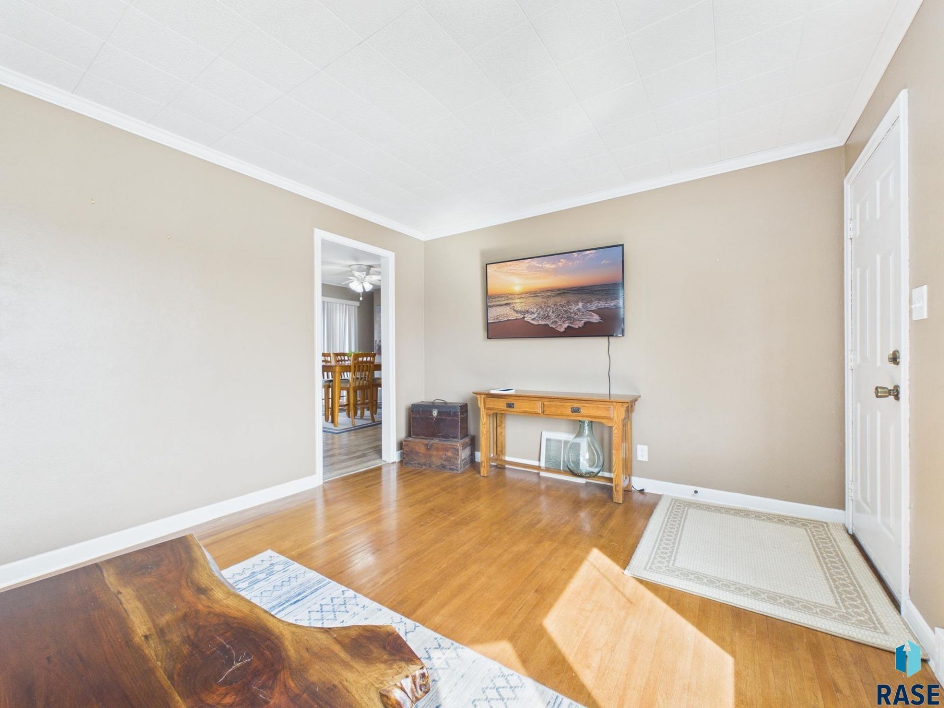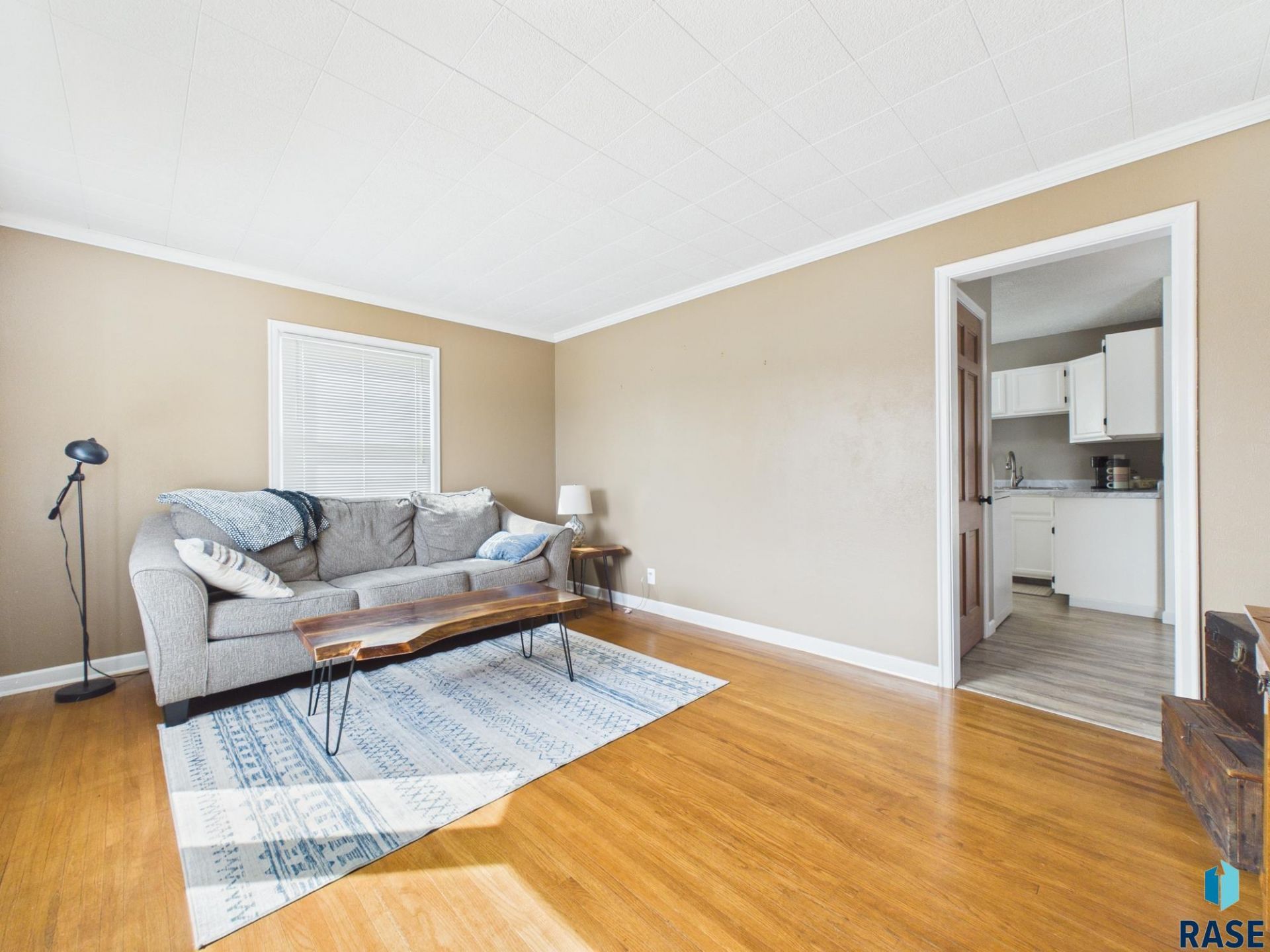 Centrally located 1.5-story home offering excellent proximity to downtown Sioux Falls and local universities. This well-maintained property features hardwood flooring, a bright kitchen with new vinyl planking, and newer windows. The exterior boasts a high-end, low-maintenance vinyl deck and a large backyard. A standout feature is the oversized 2-stall garage with new insulated doors, ideal for a shop or studio. Basement is plumbed for a second bathroom, providing an easy opportunity to add square footage and value.