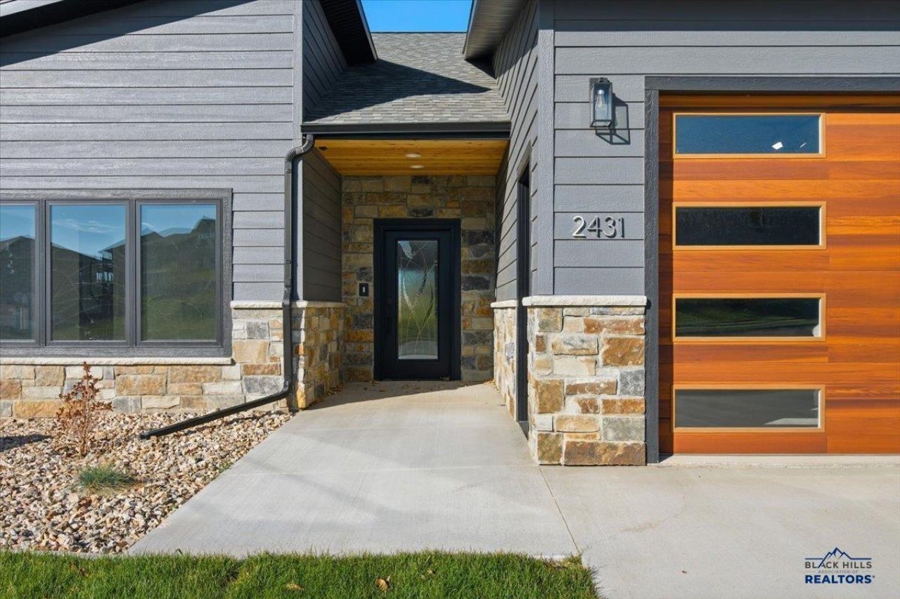Listed by Jenni Sneesby - 605.645.1181 - Engel & Vlkers Black Hills. This newly built ranch home in Vernon Heights combines high-quality construction, modern finishes, and peaceful Black Hills views on a spacious 0.64-acre lot. Designed for comfort and efficiency, the home features an open-concept main level with vaulted ceilings, a gas fireplace, and large windows that frame the covered deck and surrounding landscape. The kitchen includes quartz countertops, soft-close cabinetry, a large island, and stainless appliances. The primary suite offers a generous layout, walk-in closet, and a well-appointed ensuite bath. The lower level is fully finished with insulated concrete form (ICF) walls for excellent temperature control, sound reduction, and energy efficiency. A large family room, two additional bedrooms, and a full bath create flexible living and entertaining space. The home also includes an on-demand recirculating hot water system, providing consistent hot water throughout the home. A heated three-car garage with floor drains adds convenience year-round, and the walkout basement leads to a wide, usable backyard area. Located on a paved street with city utilities, this property offers a blend of modern design, thoughtful construction, and long-term value.