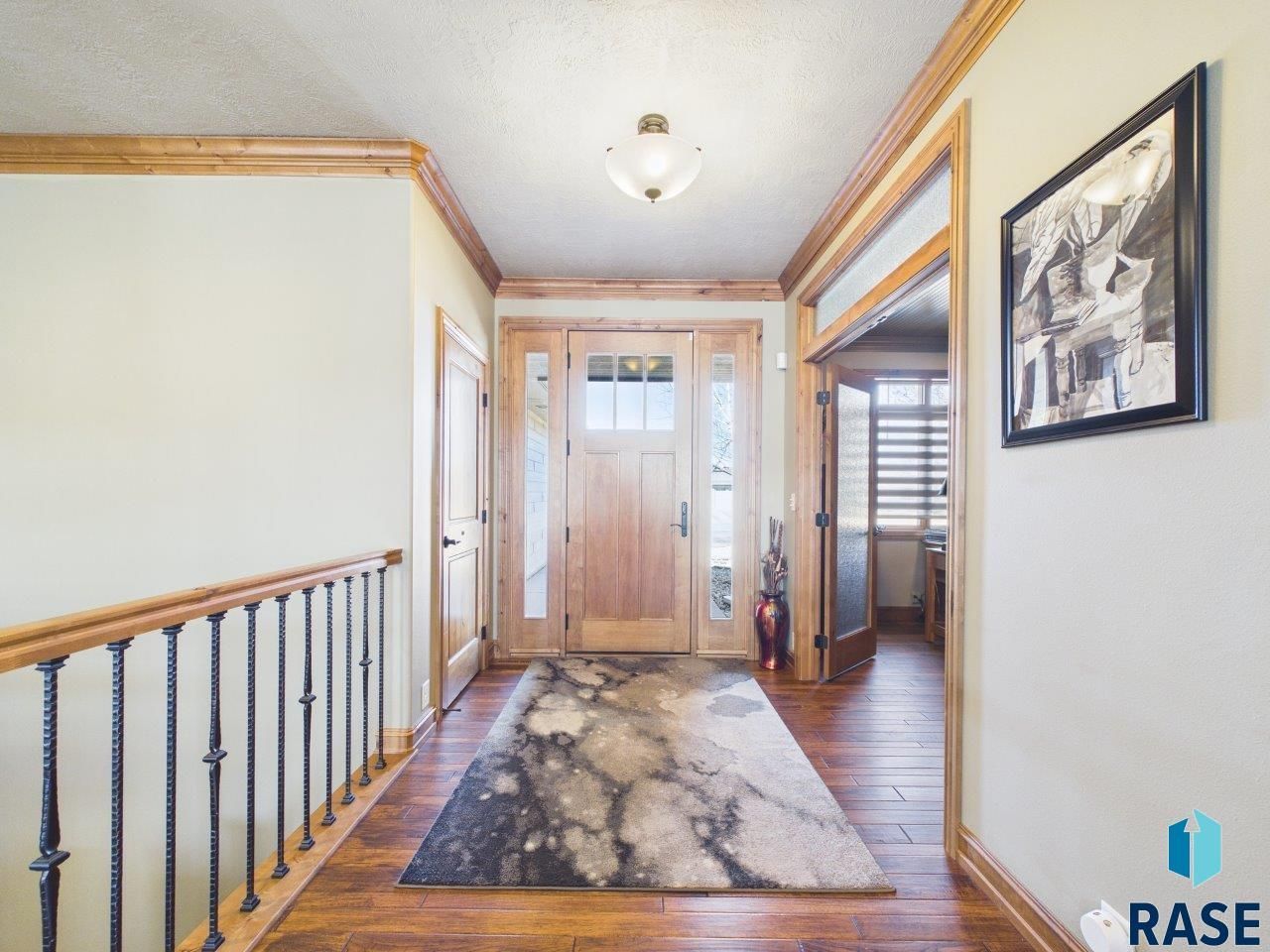 Welcome to this impressive 5/3/3 ranch home in the desirable Grand Prairie neighborhood in south Sioux Falls! Upon entering you are greeted by the open concept with wood floors, crown molding, transom windows leading to a living room featuring a brick gas fireplace. The kitchen area boasts cherry cabinets, granite counters, tile backsplash, stainless steel appliances, & island w/ breakfast bar. Off the dining room is a sliding door to the covered deck. Discover an owner's suite w/ tray ceiling, walk-in closet, and a fabulous bathroom w/ double vanity, heated tile flooring, & a large walk-in tiled shower. Also, on the main is a full bath and two additional bedrooms, one with frosted French doors that can work as an office. Rounding out the main floor is a mudroom/laundry with cubbies, cabinets, sink, & double closet leading out to the oversized triple garage w/ zero-step entry, heater, epoxy flooring, floor drain & cabinets. Downstairs is even more to admire with a spacious family room that includes another gas fireplace and fabulous bar area with tile backsplash, stainless steel appliances, & two-tier island for entertaining guests. Down the hall are two more nice-sized bedrooms, a full bath, and an extra finished room for you to utilize for exercise/office/storage. Plus, an HOA that includes garbage pickup and a clubhouse featuring a party room, fitness, guest suite, indoor/outdoor pools, tennis/pickleball/basketball court & playground!