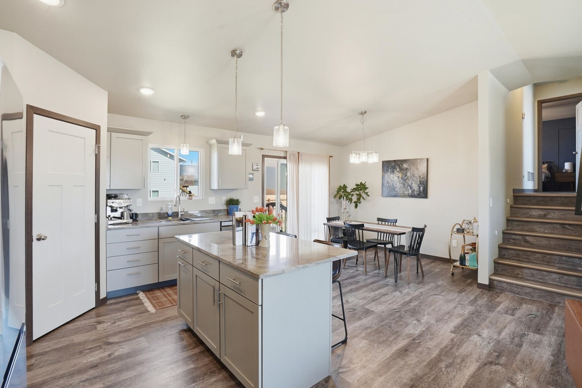 Presented by Bobbi Bentz with Engel and Volkers605-390-1941. Modern, hip, and move-in ready! This bright tri-level home offers 3 bedrooms and 3 full baths with a smart, spacious layout. The stylish kitchen is decked out with quartz countertops, a large island, pantry, and gas stove?perfect for cooking and entertaining. The main level is open and cheerful with great natural light. Upstairs features a huge primary suite with a walk-in closet and a private ensuite bath, plus another bedroom and bath. The lower level includes a bedroom, full bath, cozy living room, and convenient laundry. All set on a large, fully fenced corner lot with finished landscaping. Clean, modern, and ready to love!