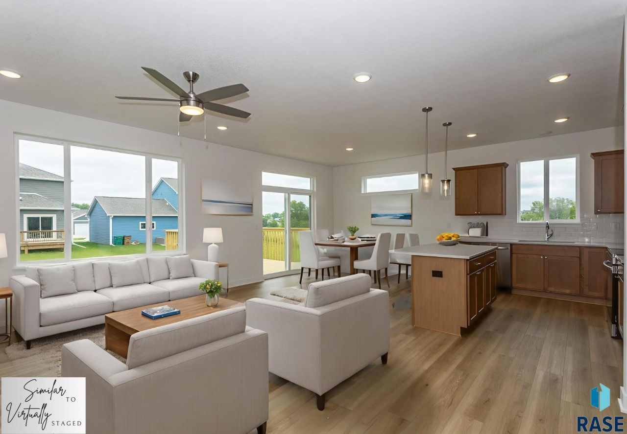 Welcome to Willows Edge by Signature Homes, and the Karver floor plan, a thoughtfully designed 3-bedroom, 2-bath ranch-style single-family home that blends comfort, functionality, and modern style in a growing east-side neighborhood. The open-concept main level offers an easy flow between the living space and kitchen, creating an inviting layout for everyday living and entertaining. The kitchen features a center island, spacious pantry, 36 upper cabinets, quartz countertops, tile backsplash, and painted cabinetry, while the living room is accented by a cozy electric fireplace that adds warmth and ambiance. The primary suite provides a private retreat with an ensuite bath featuring tile shower walls, while additional bedrooms offer flexibility for guests, hobbies, or a home office. Main-floor laundry adds everyday convenience. The unfinished walkout basement provides endless opportunity for future expansion, whether you envision additional living space, a gym, or a home office, with direct access to the backyard. A 3-stall garage offers excellent room for vehicles, storage, or a workshop. Interior finishes include LVP flooring, ceiling fans, upgraded plumbing fixtures, 3-panel doors, and an appliance allowance. This home delivers smart design, flexibility, and long-term value in one of Sioux Falls' newest communities.