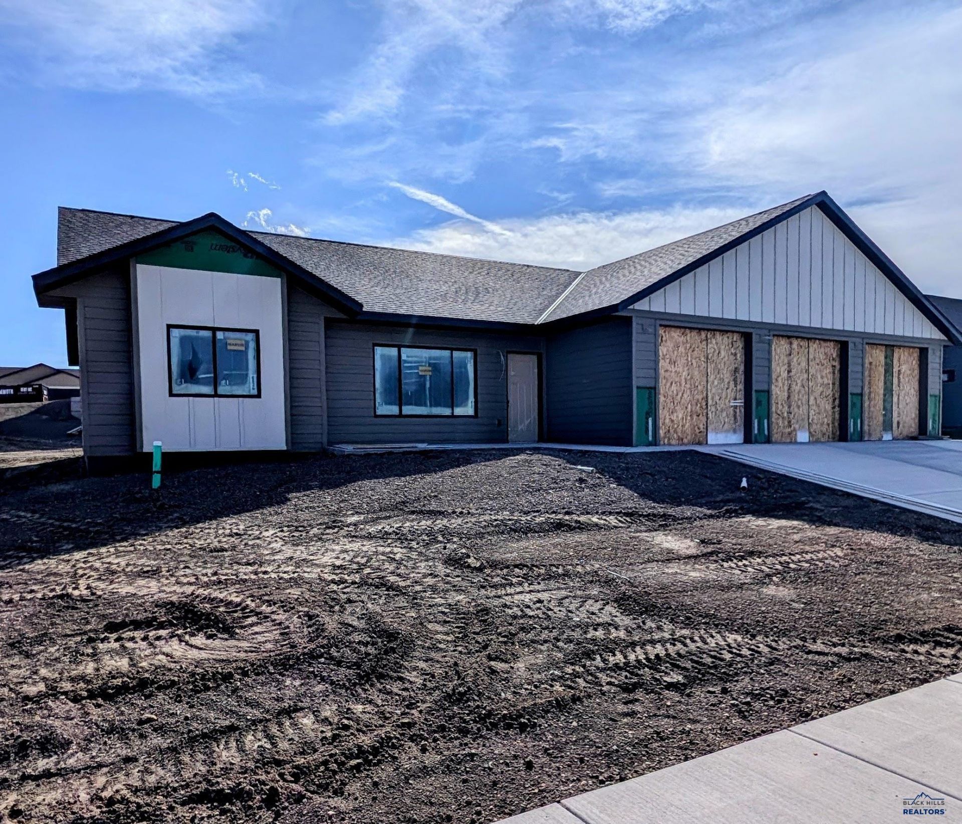 Welcome to this well-designed 3-bedroom, 2-bath home in Elk's Country Estates in Rapid City. This zero-entry home offers easy, functional living with the benefits of brand-new construction. The open-concept layout features vaulted ceilings and a calm, comfortable feel with softer, more controlled natural light. An oversized gas fireplace anchors the living space and creates a place you will actually want to settle into. The kitchen is the heart of the home with quartz countertops, a large island, under-cabinet lighting, and a walk-in pantry. The dining area opens to a covered concrete patio with gas and electrical already in place, making outdoor living simple. Landscaping is included, so the exterior is complete from day one. Elevated finishes and thoughtful design give this home a custom feel without the custom build process. The primary suite includes a double vanity, walk-in shower, motion-activated toe-kick lighting, and a spacious walk-in closet. Two additional bedrooms and a full bathroom offer flexibility for guests, family, or a home office. The oversized 3-car garage is ready for a workshop or future upgrades with gas heater plumbing, hot and cold water roughed in, and 220 power available. Just inside, the mudroom offers space to customize storage and seating to fit your daily routine. A conditioned crawl space and radon mitigation system add comfort and peace of mind. HOA-maintained lawncare and snow removal make this home truly move-in ready.