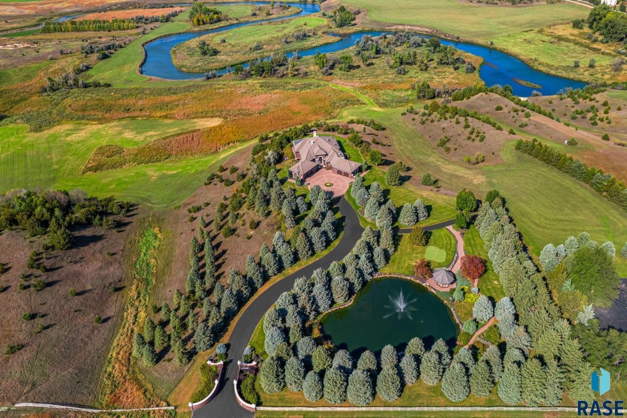 Valley View Villa is a breathtaking estate that blends timeless elegance with modern luxury. Set atop a bluff, the villa offers sweeping views of the expansive Firesteel Creek Wildlife Refuge, a true testament to South Dakota's natural beauty. Spanning 14.76 acres, the property is nestled west of Lake Mitchell, just a short drive from the Mitchell, SD airport. The land features pristine prairie meadows and rolling hills, adorned with majestic trees, ensuring privacy and tranquility. The estate is an architectural masterpiece, combining classic Victorian design with contemporary amenities for the ultimate in comfort and style. Upon entering, the grand foyer opens to an expansive indoor/outdoor living space with a retractable roof, perfect for both intimate relaxation and large-scale entertaining. The heart of the home is a stunning fireplace that provides a warm, inviting atmosphere in the center of this spacious area. For those who love to entertain, the exceptional catering kitchen is designed for convenience and functionality. Enjoy beautifully manicured putting greens for outdoor recreation, a serene pond with a gazebo and a 6,632 sq ft pavilion with 9 garage doors. Valley View Villa is truly an extraordinary property that offers a rare opportunity to live in a stunning, luxurious setting with every comfort and convenience imaginable.