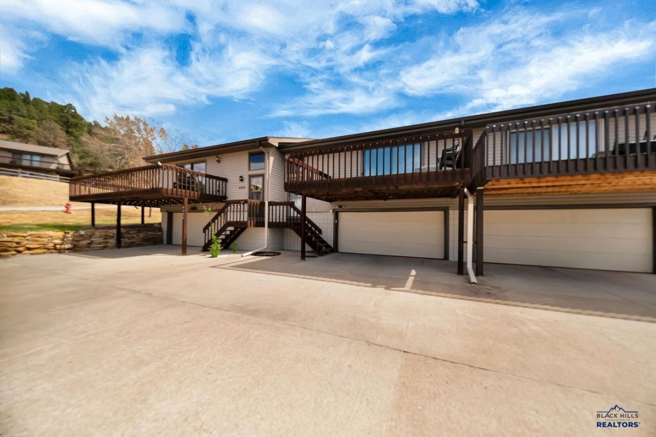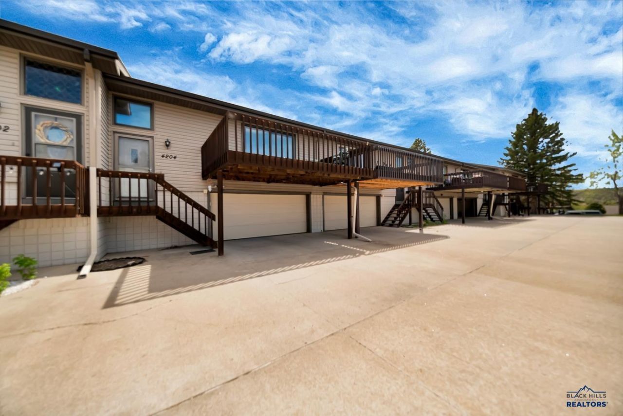 Listed by Kathy Sundby, SUN REAL ESTATE, 605-484-0422. Enjoy an exceptional location with beautiful views both front and back, backing to a peaceful wilderness area with no rear neighbors. Just a short distance to the community swimming pool and clubhouse, open seasonally for summer enjoyment. The home offers spacious living and dining areas filled with natural light, along with two bedrooms, two bathrooms, and a two-car garage. The primary suite features dual closets and a sliding glass door that opens to a maintenance-free deck-perfect for relaxing or entertaining. Recent updates include newer shingles, and the lower level provides an ideal space for a home office or flex area. The backyard setting is a standout, surrounded by pine trees and natural beauty, creating a serene outdoor retreat. Enjoy low-maintenance living with townhome convenience and HOA-managed care.