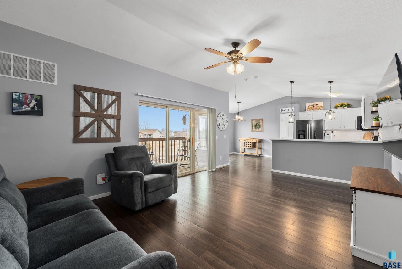 Welcome to this beautifully updated upper-level condo offering peaceful views and no immediate backyard neighbors! This well-cared-for 2 bedroom, 1 bathroom condo is truly move-in ready. The open-concept layout allows the living room, kitchen, and dining area to flow seamlessly together, creating a light-filled, functional space. A large sliding door leads to the covered patio/deck, where you can unwind and enjoy the open view and surrounding nature. The kitchen features black stainless steel appliances, new white tile backsplash, recently updated laminate wood countertops, a pantry, and ample cabinet storage. The primary bedroom includes a walk-in closet and ceiling fan, while a second bedroom, full bathroom, and convenient in-unit laundry complete the interior. A spacious one-stall garage is also included. Enjoy low-maintenance living with an HOA that covers lawn care, snow removal, water/sewer, garbage, and exterior maintenance. All that's left to do is move in and enjoy.