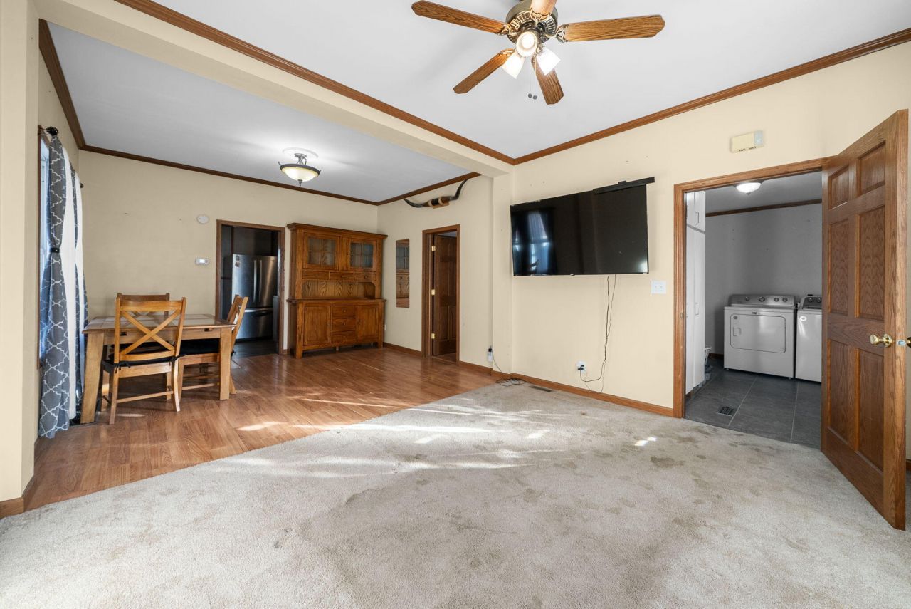 Welcome to this charming 2-bed, 1-bath ranch--perfect for first-time buyers or low-maintenance living. Enjoy a clean, carpet-free layout with main-floor laundry. The unfinished basement offers great storage or future potential. Outside features a fully enclosed privacy fence and an impressive 3-stall garage--ideal for vehicles, hobbies, or extra workspace.