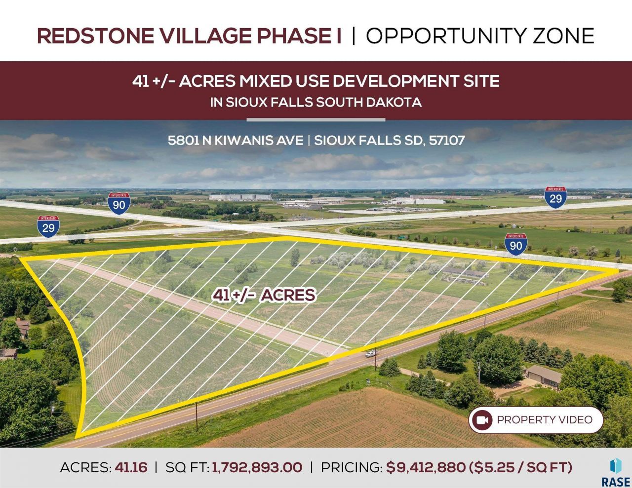 INVESTMENT HIGHLIGHTS41+/- acres prime mixed use development site with exposure on both I29 & I90 priced at $5.25 per square foot.Zoned C-4 & LW Southeast Corner of I29 & I90 Entire Property within a rare Opportunity Zone for investors looking to place Capital gains liabilities into tax deferred investmentRetail, Self-Storage, Apartments, Multi Family & more. Sioux Falls Airport (FSD) 3.6 miles away (5 minutes)