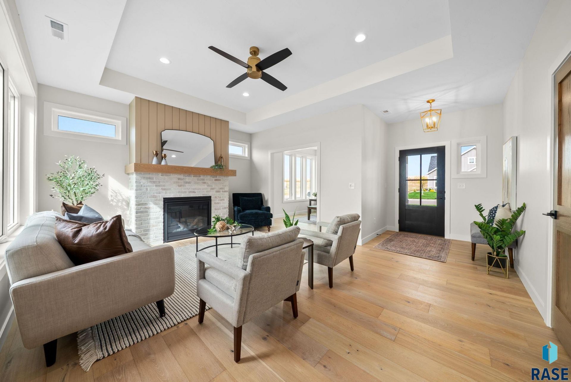 Courtyards at Golden Gateway presents the Palazzo floor plan, ranch-style home. This is an amenity rich 55+ Active Adult Community. This spacious floor plan features a 2 bed and 2 baths, private side courtyard, 4 seasons room, 2 stall garage, and 1652 finished square feet. Fine Luxury Living. Designer curated packages include upgraded high-end finishes from the base floorplan such as custom wood cabinets, engineered hardwood flooring, designer carpet with trending pattern/color, quality solid doors, beautiful quartz countertops, full GE stainless steel appliances, innovative Moen fixtures, a zero entry tiled walk-in shower with heated tile flooring in the primary bathroom, an impressive walk-in closet complementary to the primary suite, and an gas fireplace that will make a focal statement in the living area of the home. HOA amenities include lawn care, snow removal, garbage and clubhouse amenities.