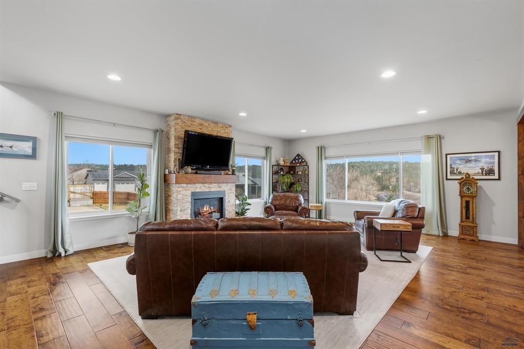 Listed by Seth Malott with CENTURY 21 ClearView Realty 605.545.2609. Welcome to this beautiful two-story home in the desirable Ridge at Catron Crossing subdivision, offering 4 bedrooms, 3.5 bathrooms, and over 3,500 finished square feet of well-designed living space. Built in 2014 and situated on a 0.26-acre lot, this home features an open main level with tall ceilings, a spacious living room centered around a cozy gas fireplace, and a functional kitchen complete with breakfast bar, walk-in pantry, and adjoining dining area with access to the deck, which is perfect for indoor-outdoor living. The upper level includes three bedrooms, each with a walk-in closet, a full bathroom, a loft, and convenient upper-level laundry, while the primary suite offers a relaxing retreat with double sinks, a tiled shower, and a soaking tub. The walkout basement is finished with a large family room, an additional bedroom with a walk-in closet, a 3/4 bathroom, and extra storage space, with potential for future laundry. Additional highlights include central air, forced-air heat, a three-car attached heated garage, a sprinkler system, and beautiful hill and neighborhood views from all levels. Located in Rapid City with easy access to amenities, this home offers space, functionality, and comfort in a sought-after neighborhood.