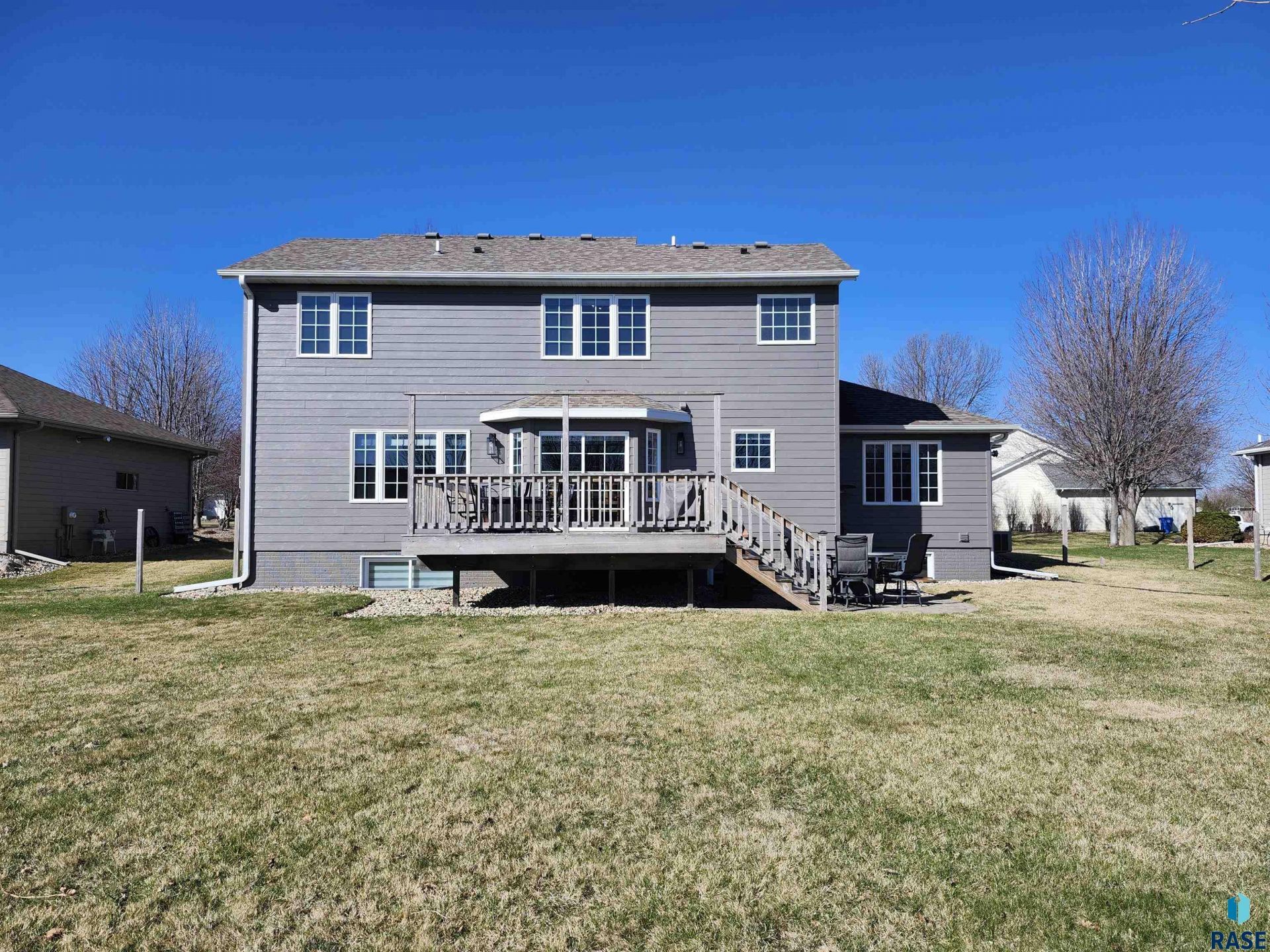 Four bedroom, 3.5 bath South Central Sioux Falls 2-Story with many updates in the last 5 years. The upper level includes the master ensuite as well as 2 additional bedrooms. The main floor foyer offers immediate access to a formal dining room but currently houses a baby grand piano. The entire backside of the main floor is open from the living room through the dining area as well as the kitchen. Just beyond the kitchen is the den that overlooks the very large backyard. The 4th bedroom is on the lower level that includes a family as well as a game/home gym area all of which looks across the backyard. The front of the home offers the always desired west facing direction allowing great late afternoons and evenings on the east back deck/paver patio where you and your guests can find relief from the sun. Upgrades and improvements under the current ownership include all new paint, epoxy garage floor, cabinet doors-hardware-paint, upper level carpet, and gutters. The work here is done. Take the online virtual of this home today, then book your in-person tour.