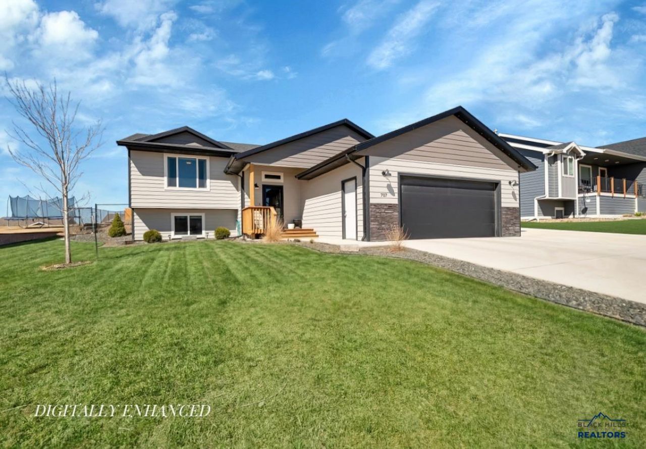 707 Summerfield Dr | Welcome home to this beautifully maintained extended entry split foyer home built in 2020. 3 Bedrooms (4th in the basement just needs finished. Already has egress window) 3 bathrooms, and a 2 car garage! The home features an open layout with vaulted ceilings and custom light fixtures throughout from BES lighting. The kitchen is a standout with sleek quartz countertops and stainless steel appliances. The master suite includes a private bathroom with double vanity sinks and a walk in closet. Downstairs you will find a large family room area perfect for entertaining. Step outside to enjoy the fully fenced backyard complete with a 22x15 concrete patio and a covered gazebo. Fully landscaped yard and Sprinkler system to maintain it! The garage is fully sheet rocked and heated! An added bonus is the extra concrete pad alongside the garage providing additional space for parking! Don't miss the opportunity to own this move in ready home with modern finishes!