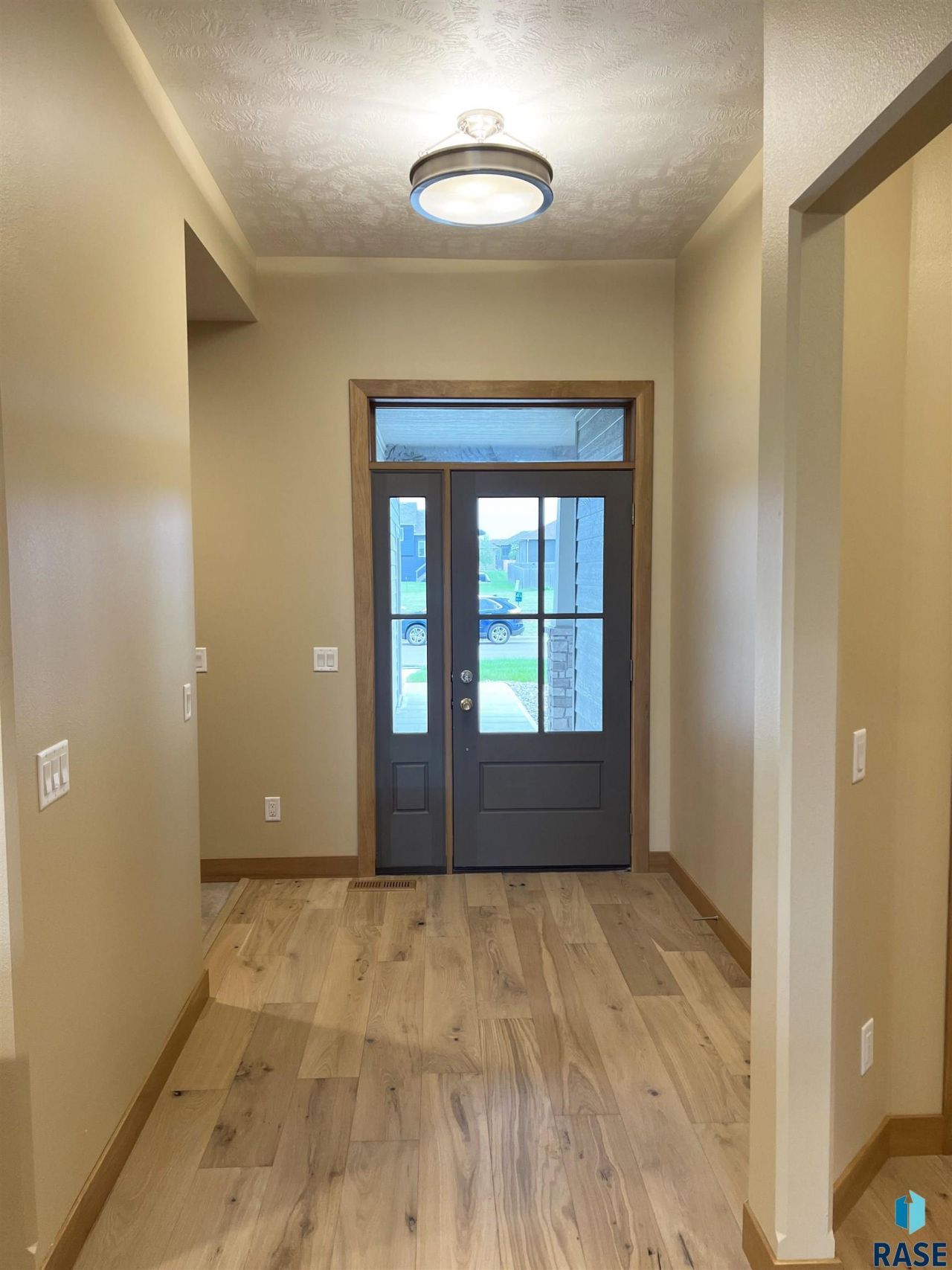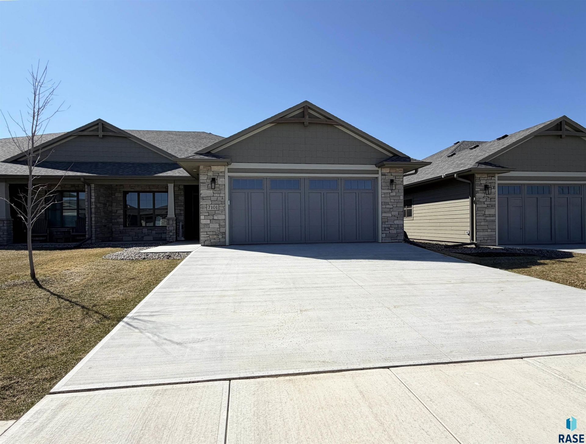 Newly installed backyard privacy fence. Premium twin home located in the Copper's Edge HOA community in eastern Sioux Falls on an exclusive cul-de-sac reserved for HOA owners. This home includes stained millwork and traditional 5-panel Shaker style doors to match. The kitchen features Rustic Alder cabinets in a Natural Chocolate stain with upgraded glass inserts, large island with upgraded Kohler faucet, granite countertops, and designer tile backsplash. The kitchen and dining room include spacious 10ft ceilings. The living room is designed with a step ceiling with wood beams and shiplap accent and a cozy gas stone fireplace with built-in cabinets. Upgrades include luxury Courtyard Collection overhead doors, aluminum clad Vista Grande Fir Fiberglass front door, Andersen 400 Series windows with custom grilles, engineered hardwood floors, granite in the bathrooms, and spa-like tile shower with multiple shower heads. Comfort and efficiency with 96% efficient 2 stage gas furnace, Broan air exchanger for fresh, filtered air, Moen Flo smart water monitor, spray foam and blown-in insulation for sound mitigation.