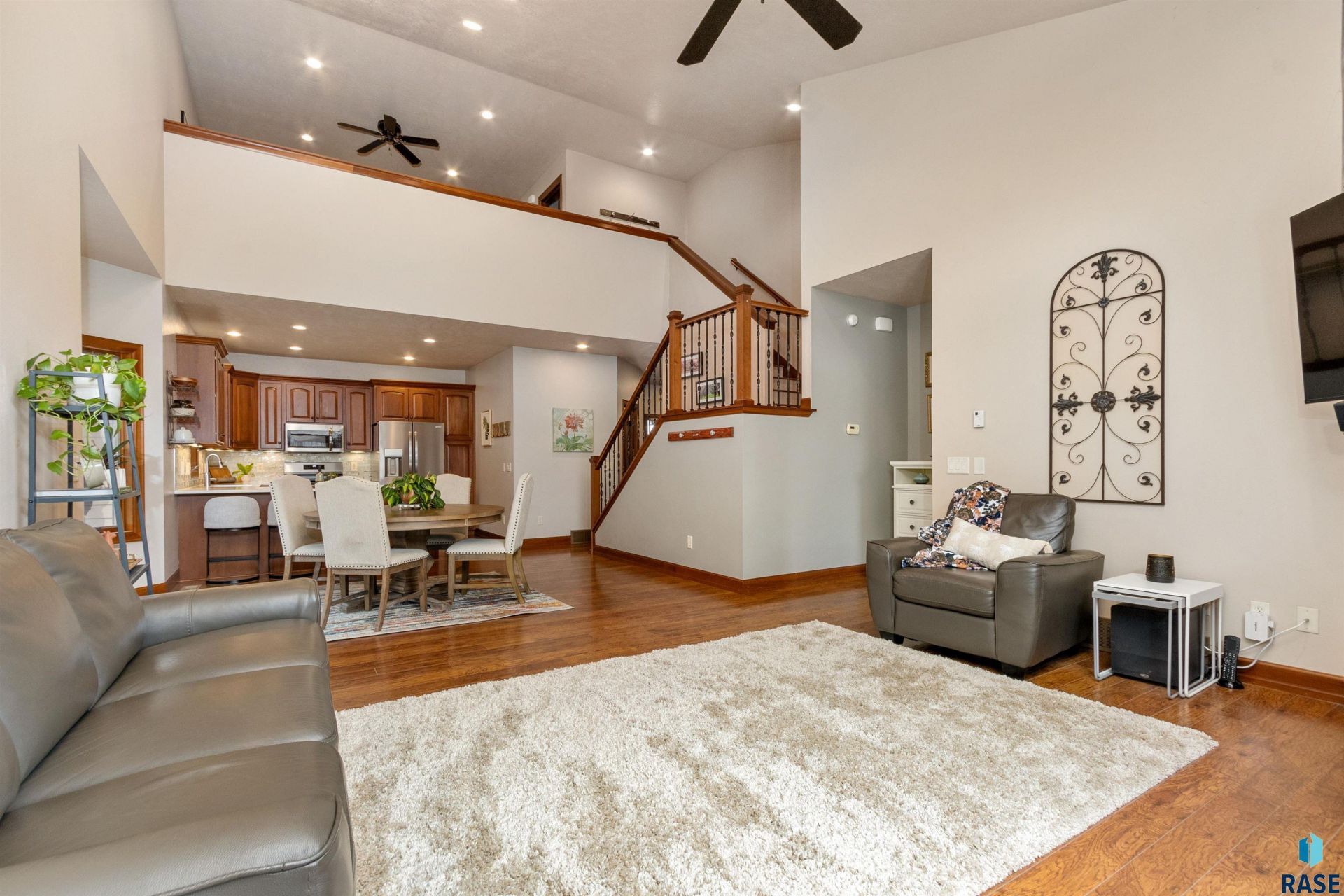 Stunning Twin Home in South Sioux Falls. This property features a main level Primary bedroom, with spacious full bathroom & a walk-in closet. Also, on the main level a separate laundry room w/new Quartz countertop. Kitchen includes stainless steel appliances, new backsplash, new Quartz countertops & new sink. Main level is open & inviting with a vaulted ceiling, gas fireplace, ample space in the dining room, guest half bath & a door to a newly finished patio w/pergola & landscaping. Upper level includes 2 great size bedroom with double closets, a loft area & a full bath. Lower level features a huge family room w/fireplace, a 4th bedroom, another full bath, craft room & storage/utility area. Property also includes a heated 3-stall garage w/water hookups & drain, privacy fenced backyard & outdoor lighting in the front yard. HOA covers; trash, snow removal, mowing & landscaping in the front of the house.