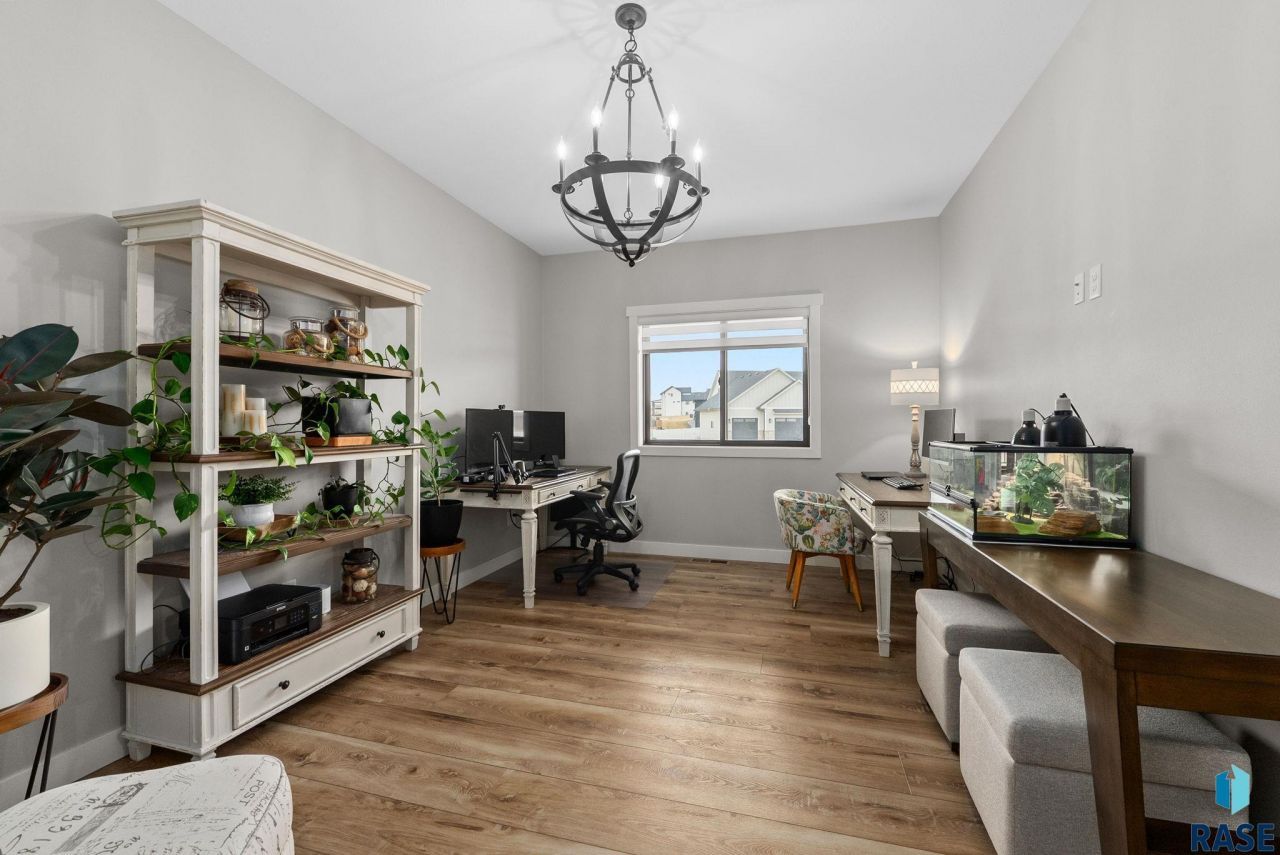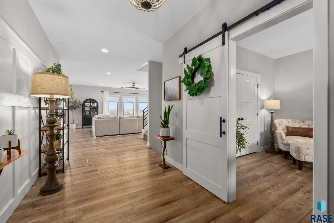Stunning 2-story walkout situated on a quiet cul-de-sac, offering unparalleled privacy and breathtaking vistas. This expansive property features a meticulously landscaped yard with fruit trees, a basketball court, and a serene wetland buffer. The interior boasts a spacious layout and elegant quartz countertops. A true standout is the oversized, fully finished garage featuring durable epoxy flooring, a custom bar, and a specialized core floor space for a workshop or extra storage. Fully equipped for entertainment, the garage includes a dedicated TV outlet with ethernet connection. A rare find in a prime location!Owner is a licensed real estate agent in the state of SD.