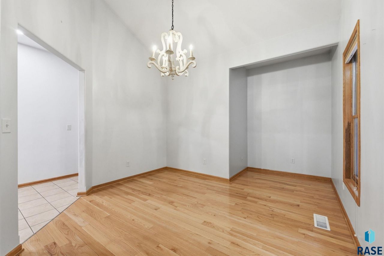 Sprawling west side ranch with room to build equity! The main floor offers over 2000 finished square feet with beautiful wood floors and vaulted ceilings. Greeted by a spacious entry, you'll enjoy the open concept living room with gas fireplace, formal dining space, and stunning kitchen. The kitchen has quartz countertops, backsplash, 6 burner Wolf stove with double ovens and ample cabinets with a convenient eat in kitchen area. A great den with French doors perfect for an extra living space or office. The mudroom is located right off the heated garage and with a convenient half bath. Three bedrooms including the generous primary bedroom with tray ceiling, bathroom suite with double sinks, whirlpool tub and tiled shower, walk in closet plus private access to the composite deck in the fully fenced backyard. The basement has so many possibilities! There are two bedrooms partially finished with room for a huge family room, additional bedroom and bathroom. Roof was replaced in 2022.
