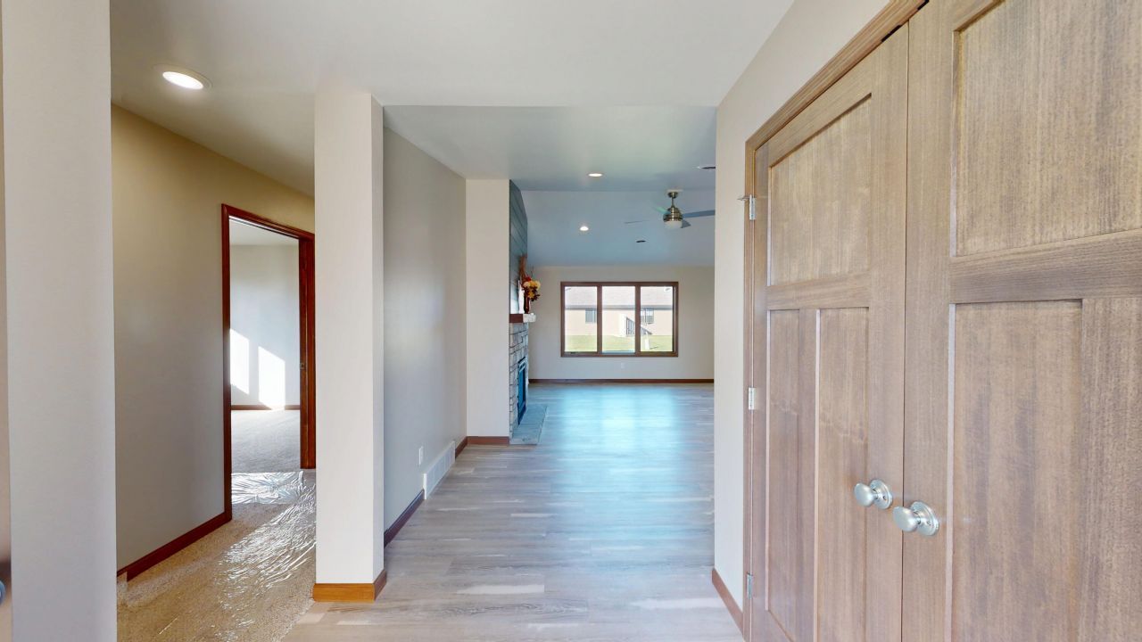 Newly construction twin home with zero steps by Mueller Lumber all located in a great neighborhood! Enjoy quality craftmanship, open concept, spacious living, natural light, and stylish finishes and gas fireplace. The kitchen shines with a large island-perfect for cooking and entertaining. Luxurious master suite with double sinks, walk-in shower & closet. ! Agent related to seller Tray ceiling Gas Fireplace 1,658 square feet 24 x 26 finished garage Back patio 16 x 12 Sprinkler system Rock landscape around home Yard newly seeded Large back yard Lot size 7723.66 Andersen Windows (400 series) (dark bronze) Tamko Titan Natural Timber shingles Seal LP Smart Siding Glacier Fog LP smart Accent Therma True exterior doors