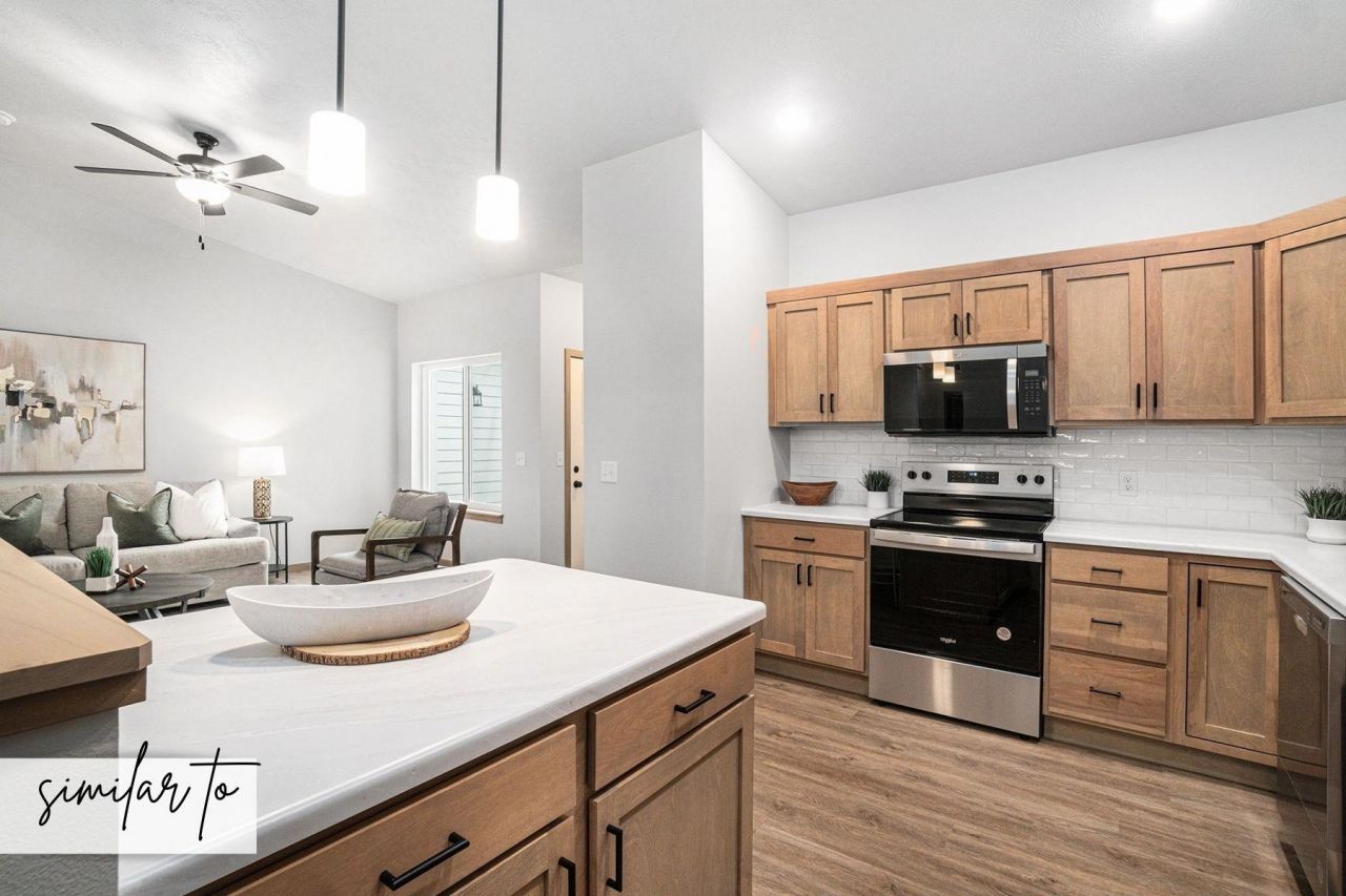 From the moment you walk in the front door you will be amazed by the 18ft ceilings and lofted features of this home. Located on the main level is your living room, kitchen with a breakfast bar, dining room, laundry room, half bath, nook and primary suite with double sinks, walk-in closet and shower. When you head to the second level you will find an open loft used for a second living space, or work from home area along with two bedrooms and a full bath. Quality construction from Empire Homes includes custom birch cabinets, solid core poplar doors, luxury vinyl tile floors, vaulted and 9ft ceilings on the main, tile backsplash. Whirlpool appliance package and landscaping are included. This low maintenance HOA offers lawn care, snow removal, and garbage. Buyer to select remaining finishes! Completion date is estimated mid May pending driveway install. Directions: 41st and Tea Ellis W to 41st N on Broek W on Gert N on Ark to homeListing agent is officer/owner of Empire HomesPhotos/finishes are similar to