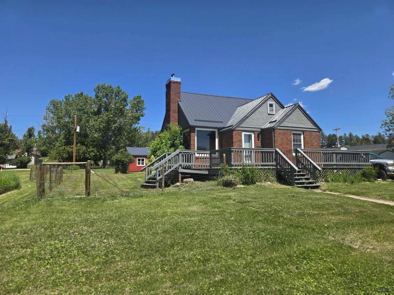 Historical charm downtown Custer 3 bedroom Brick home, 2 bathrooms, formal dining, 2 living areas. double car detached garage. This old world charmer oozes character, as you come up the huge front deck to the front door, you will enter through a foyer area with built in bench's to remove your shoes. You will notice the original hardwood floors throughout the main level as you come into the living area complete with older fireplace. There are 2 good sized bedrooms, a full bathroom with tub/ shower, open plan kitchen and formal dining area. Upstairs is a huge Master suite with formal reading/ sitting area there is a large bedroom area with ceiling fan and plenty of closet and storage spaces. There is an updated bathroom with new walk-in shower, and new vinyl flooring. The upstairs has new carpet throughout. The basement consist of a large newly sheeted and textured family room, two additional rooms for storage, and a huge 11x25 laundry and mechanical room. There is even a laundry chute. NOTE: Fire place was never used by sellers ( No repairs or chimney cleaning will be completed by sellers)