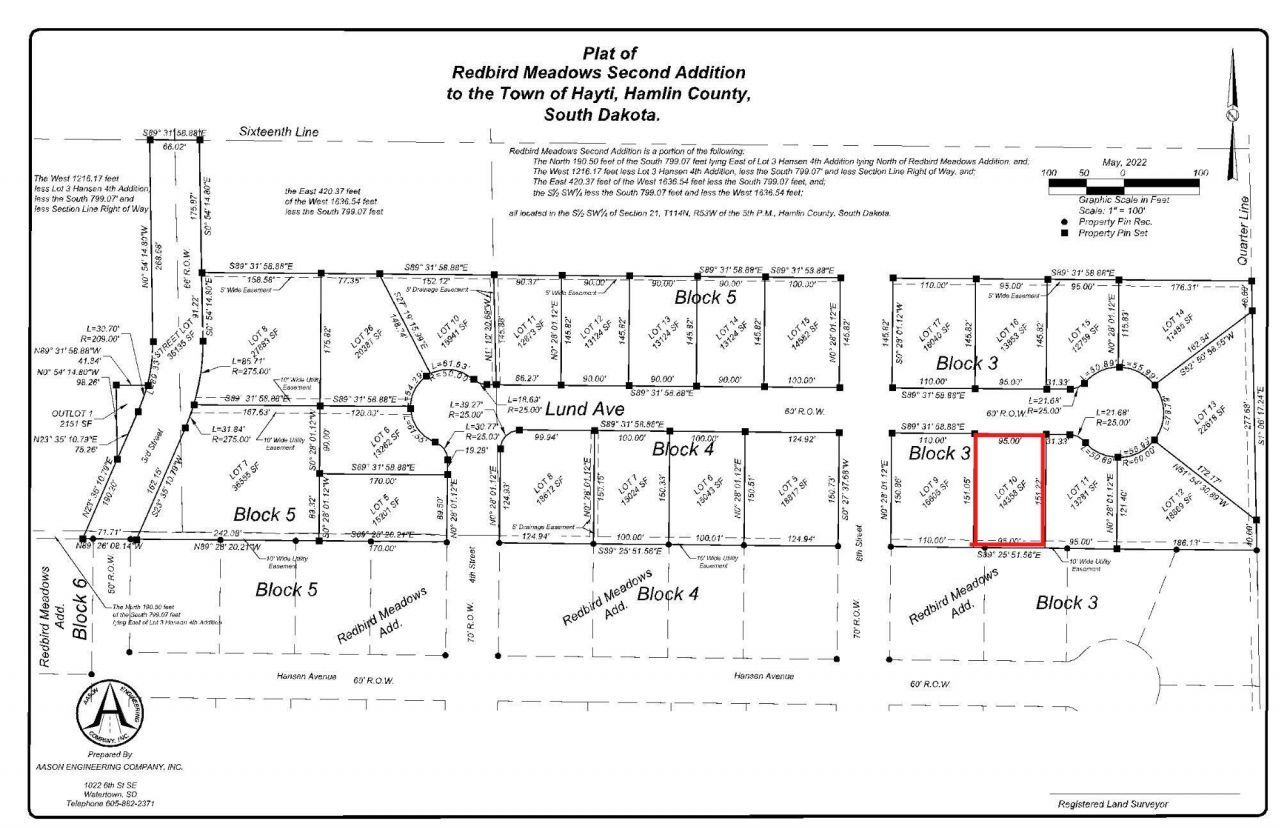 Build-ready residential lot located in a new development in Hayti, SD. This 95' x 150' lot features utilities on site and offers plenty of space for a home, garage, and outdoor living. An affordable building opportunity in a growing area where lots have been selling quickly?don't miss your chance to secure one of the remaining lots. 616 Lund Ave, Hayti, SD 57241