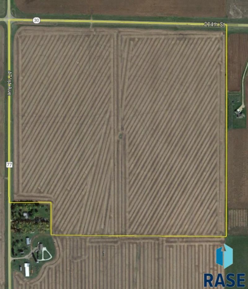 Your opportunity to own a premier quarter of ground is here! 152.89 acres containing some of the very best farm land in Brookings County is now being offered for sale to the public after being held by the same family for decades. Located at the intersection of Highways 30 & 77, 1 mile west of Interstate 29 (SE). This parcel is very unique with a combination of high NCCPI soil rating (88.65), already developed irrigation (Valley center pivot irrigation system included) and zero wasted land = no low wet acres that can't be farmed. A 1/2 share of water rights from current off-site, shared well comes with the parcel, Buyer can opt to drill a new well and either get a change in diversion point keeping the 1/2 share, then apply for another 1/2 share, or drill and have their own full share well. 3-phase power located @ pivot head. Current DANR well information (provided verbally 8/26/25), notes an aquifer roughly 15' down, gravel depth of 5'-40' providing for 35' of water bearing material. Current irrigation system reads only 3576 hours (about 50 circles or 50 of water) andhas a new panel due to lightening strike earlier this season. No discoloration of pivot head present as current well is soft water. Ready for you to take over farming after current harvest is completed. Do NOT drive on land or touch irrigation equipment without written permission. All Information deemed reliable but not guaranteed, buyer and their agent to independently verify.