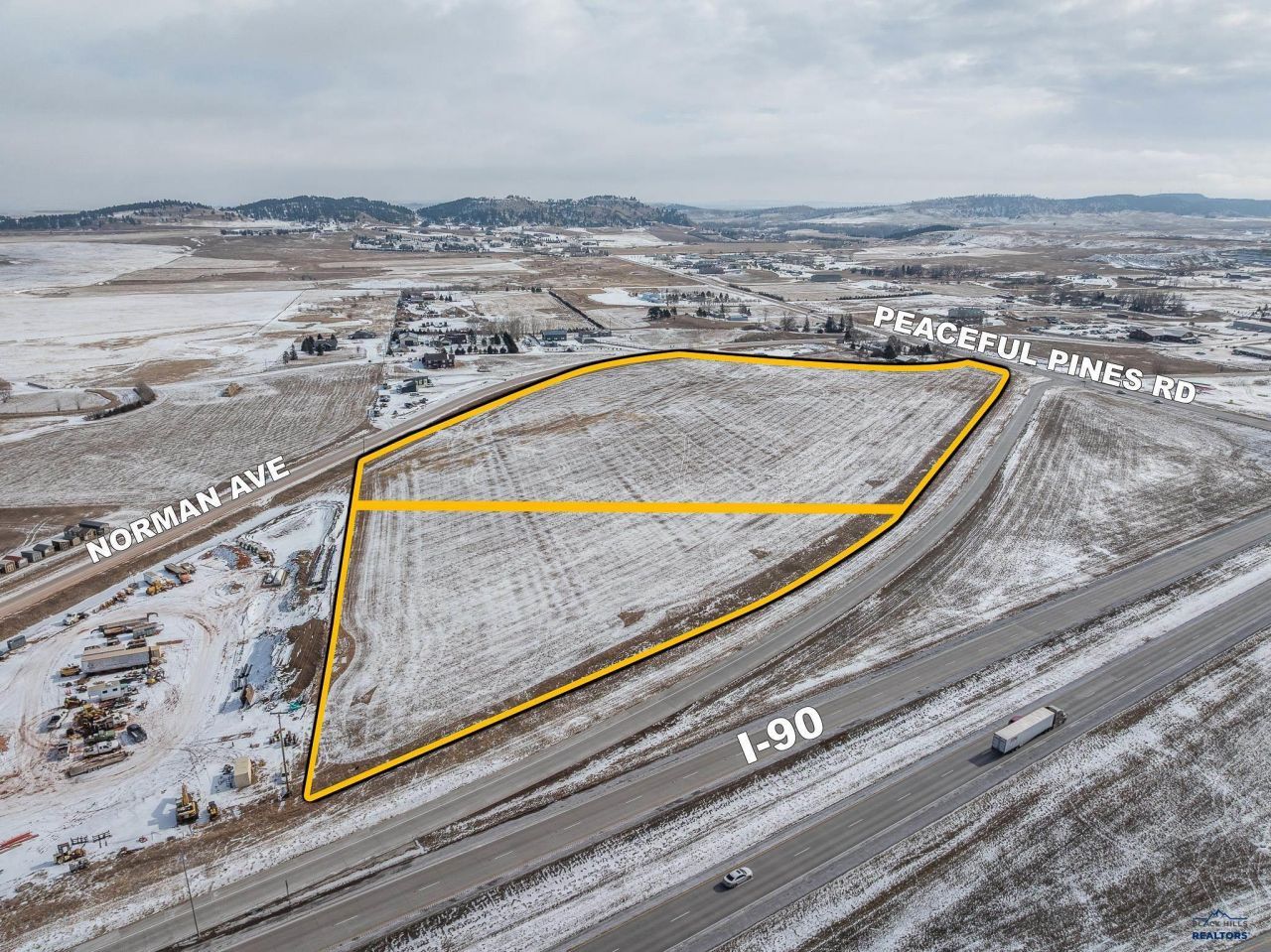 9.31 acres of development land located at Interstate 90 Exit 52 in Black Hawk, offering interstate visibility and direct access from Peaceful Pines Rd. The property features relatively flat terrain supporting a range of commercial, industrial, residential, or mixed-use development opportunities. Utilities including water, electric, and natural gas run along Norman Ave, and the property is located in Meade County with no zoning, allowing flexible development. The site sits just south of the planned Highlands at Norman Ranch subdivision, a 300+ acre master-planned housing community currently under development. The property is offered as the entire 26.13-acre site for $2,700,000, or as two parcels: Parcel 20.05.433 (16.82 acres) offed at $1,800,000 and Parcel 20.05.341 (9.31 acres) offered at $900,000. For additional information or to schedule a showing, contact Dan Logan at 605-593-7980 or Chris Long at 605-335-8100.